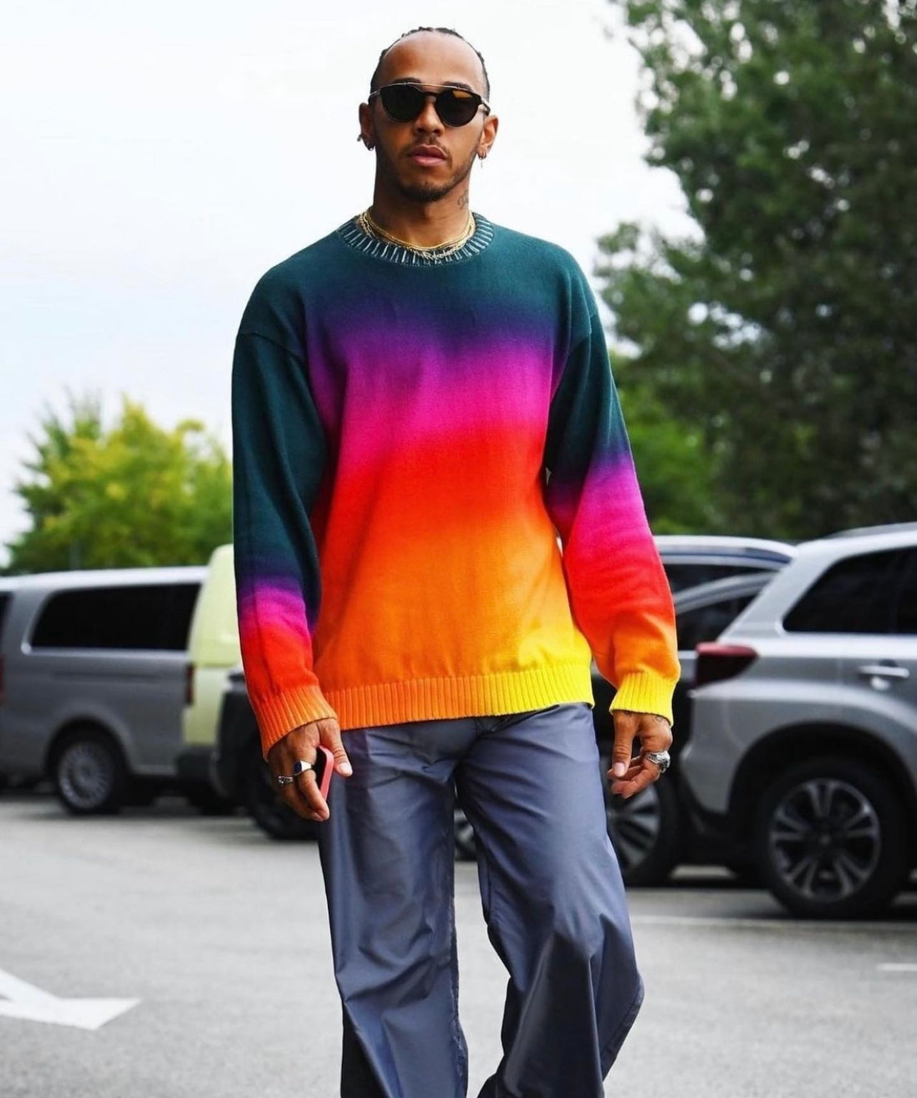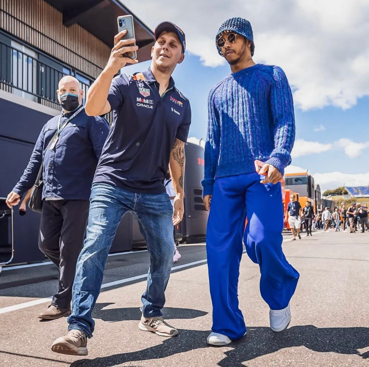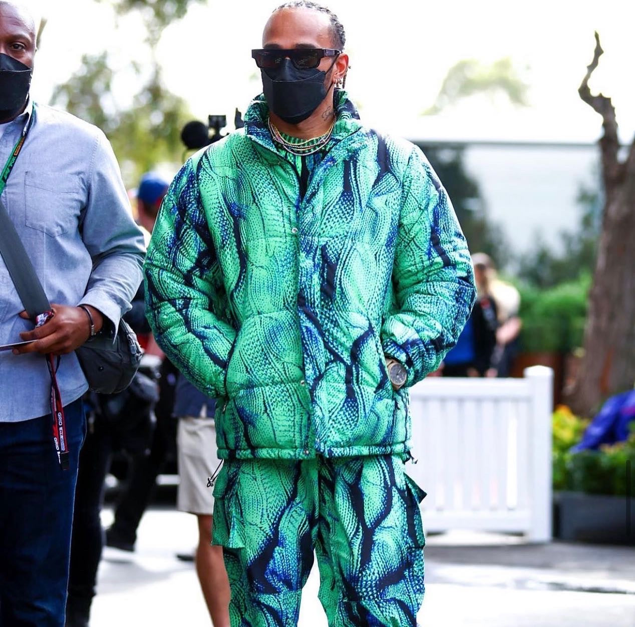 Lewis Hamilton at the Hungary Grand Prix wearing AGR's SS22 straight from the runway