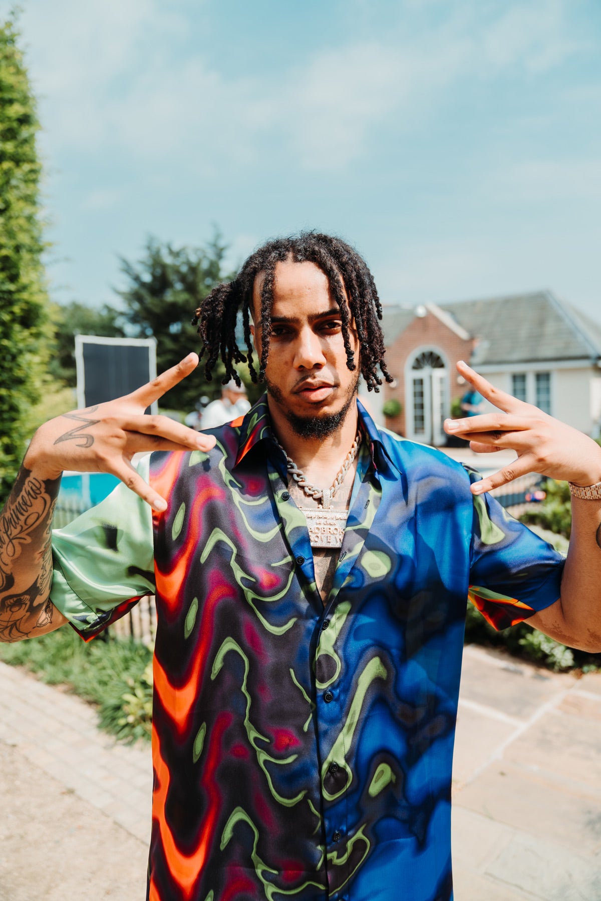 AJ Tracey wearing AGR's SS22 Silk Shirt for the 'Summertime Shootout' music video