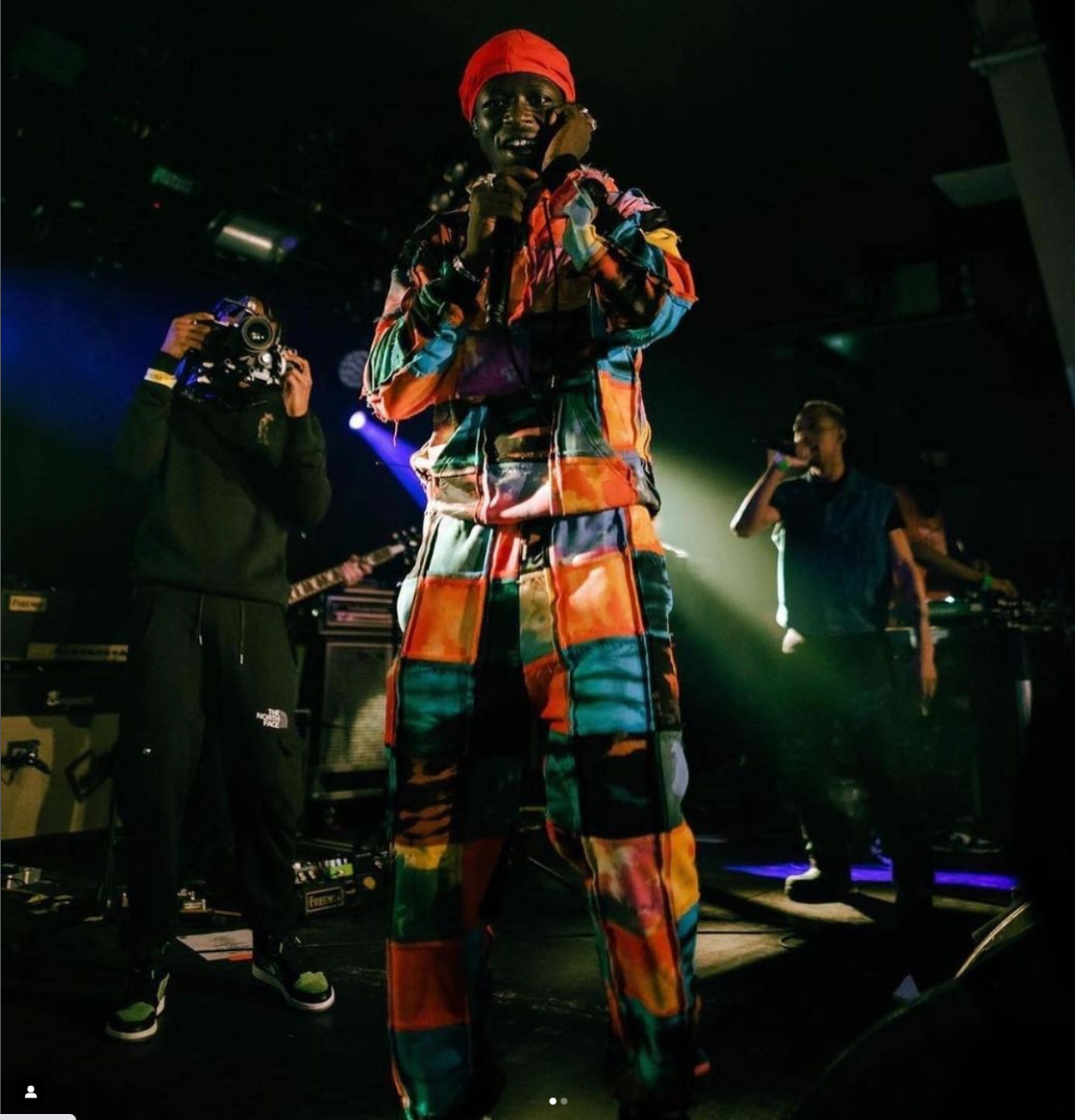 PA Salieu performing live in Birmingham wearing AGR's AW21 Patchwork Hoodie and Joggers