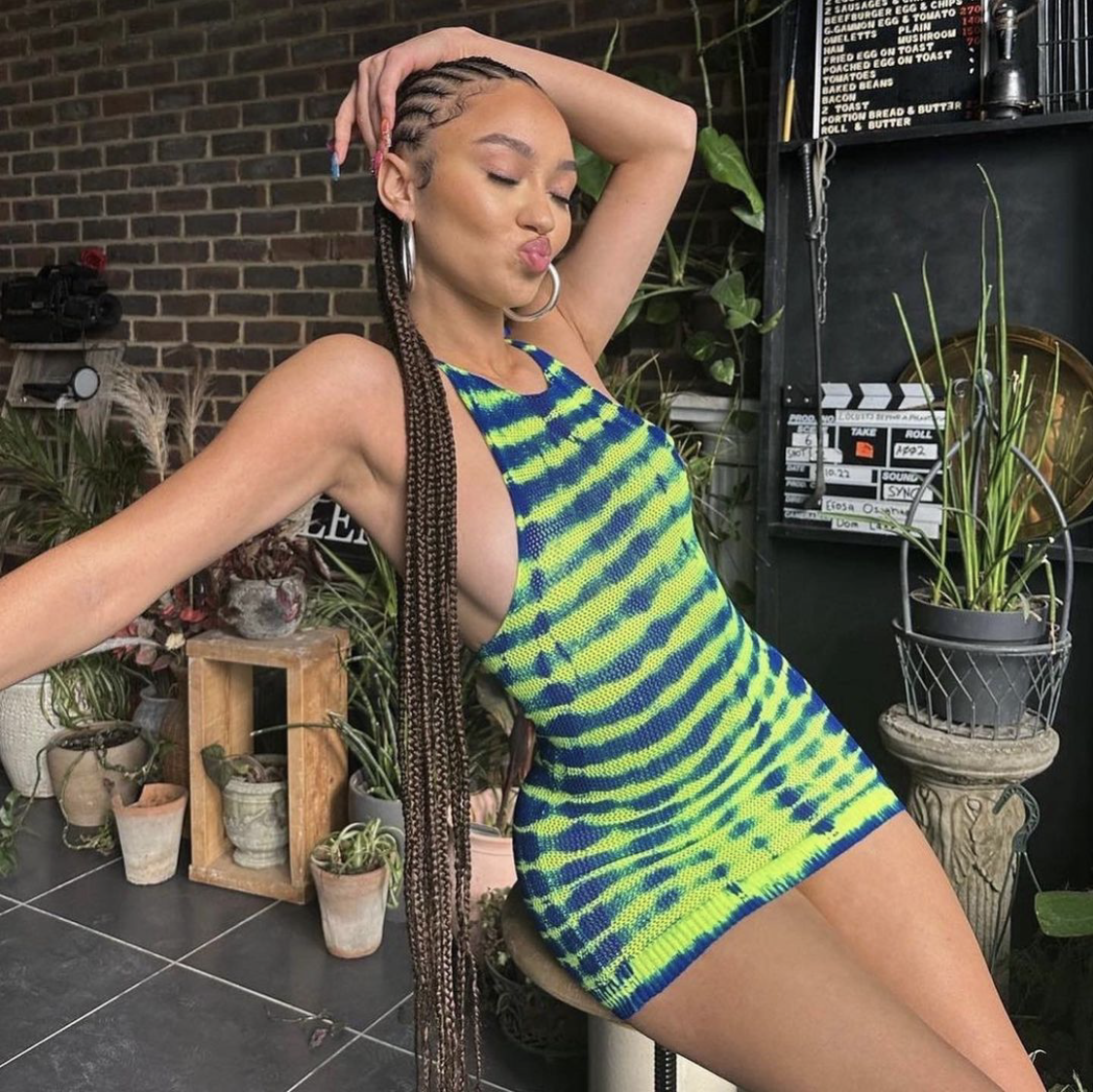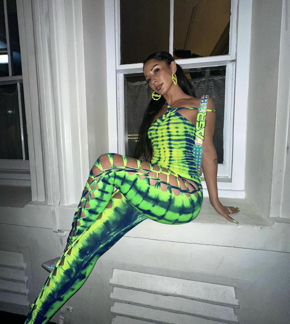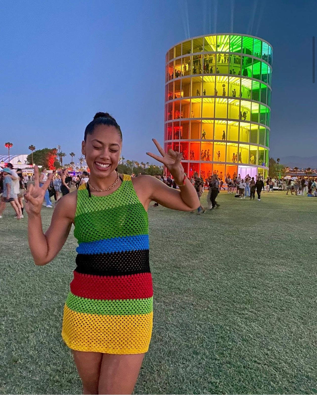 Jayda G wearing AGR's SS22 Crochet Tank Dress for Coachella Festival