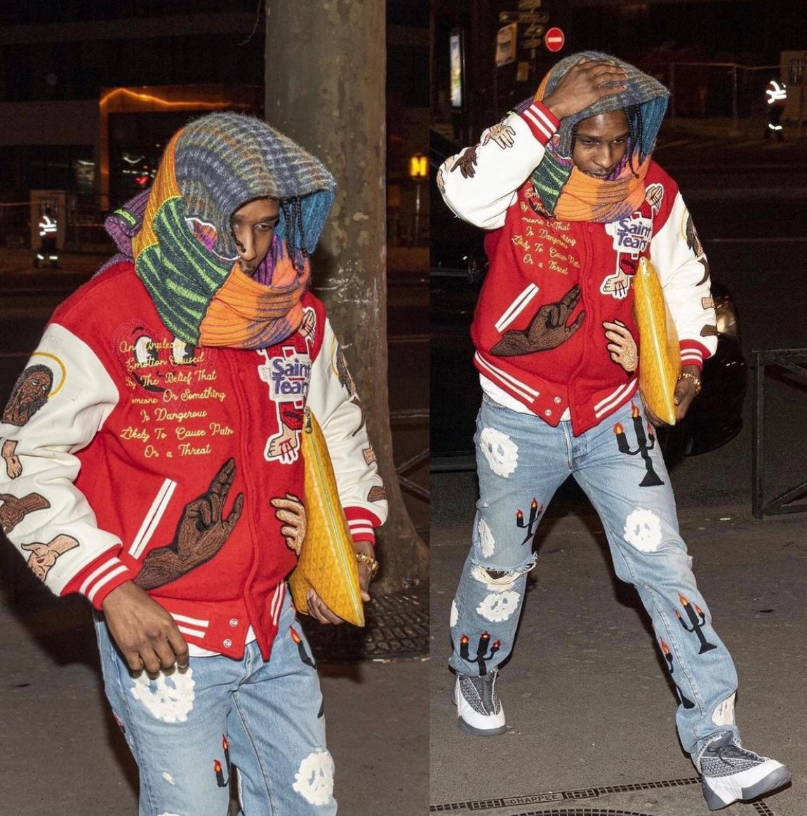 ASAP Rocky wearing AGR AW21 Patchwork Scarf